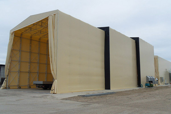 Sui fronti delle strutture è possibile applicare tende scorrevoli a singola o doppia anta dotate di tubi verticali antivento, paletti di fissaggio a pavimento, cariglioni di chiusura metallici e appositi sistemi di tensionameto.